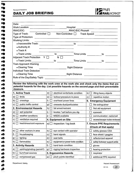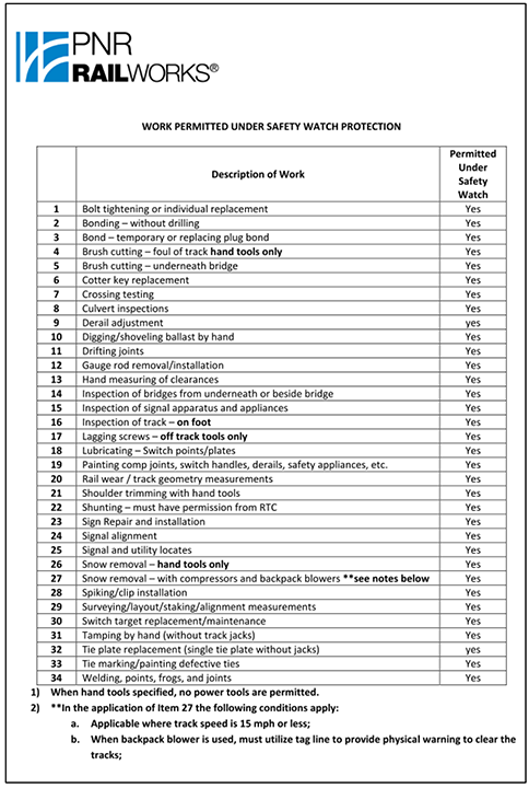 Source : PNR RailWorks, 15095 PNR Job Briefing Manual
