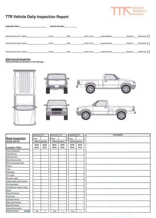 Le manuel de pratiques de travail sécuritaires de TTR comprend une section qui couvre les procédures de travail générales et les pratiques exemplaires en ce qui concerne l'utilisation des véhicules de la compagnie. Cette section décrit en détail les exigences de TTR relatives aux inspections avant le quart et à l'utilisation sécuritaire des véhicules, et mentionne tout particulièrement la vérification du klaxon. De plus, TTR remet à tous les employés d'exploitation un rapport d'inspection quotidienne de véhicule, qui consiste en une liste de vérification qu'ils doivent remplir avant chaque quart. Or, cette liste ne mentionne pas la vérification du fonctionnement du klaxon. Si une liste de vérification du véhicule avant le quart ne stipule pas la vérification de chaque composant de sécurité, il y a un risque accru que l'on ne vérifie pas tous les composants de sécurité d'un véhicule avant de l'utiliser.