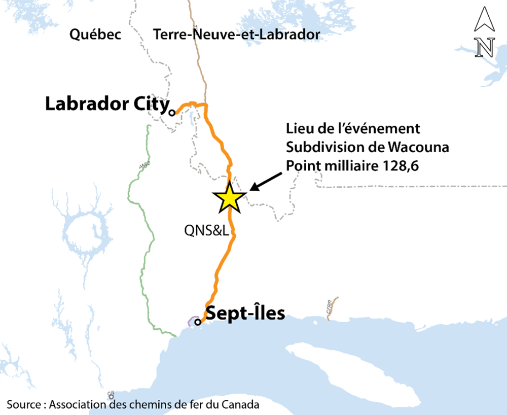 Le 25 juillet 2017, le train PH651 (le train) du Chemin de fer QNS&L (QNS&L) roulait vers le sud sur la subdivision de Wacouna. Le train était composé de 2 locomotives placées en tête du train et d'une rame de 159 wagons chargés de minerai de fer. Le train mesurait environ 5700 pieds et pesait environ 20 000 tonnes.