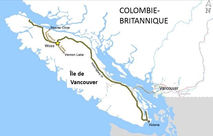 Le chemin de fer comprend une ligne principale de 90 km (56 milles) – la subdivision de Nimpkish (la subdivision) – et un certain nombre de lignes secondaires qui relient 4 centres de rechargement de grumes. La subdivision commence aux installations côtières de triage et de flottage du bois à Beaver Cove (Colombie-Britannique) (point milliaire 1,0), passe par Woss (Colombie-Britannique) (point milliaire 37,7), et prend fin à Vernon Lake (Colombie-Britannique) (point milliaire 56,4) (figure 1).