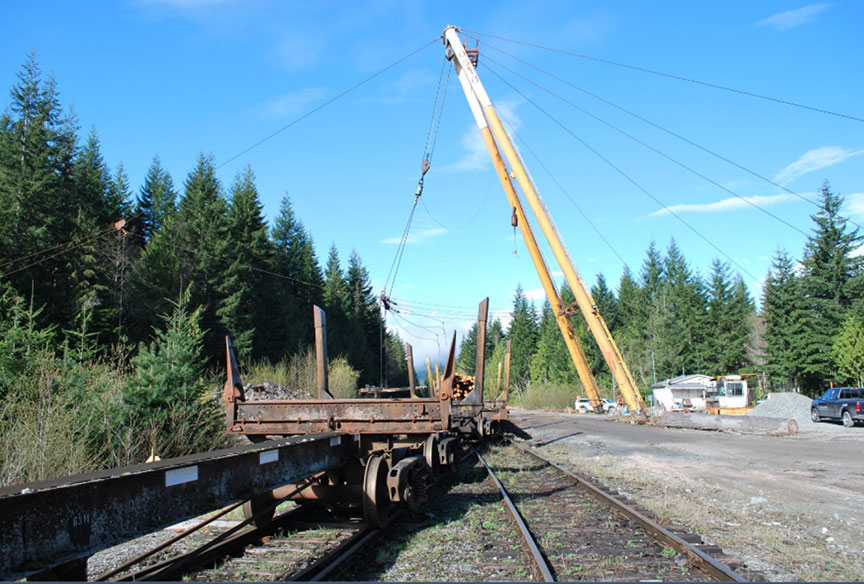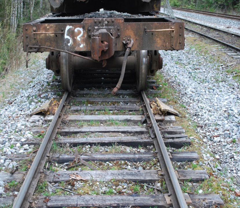 Les rails à l'intérieur Centre de rechargement de Woss, comportant principalement des rails de 85 livres, avaient été fabriqués entre 1906 et 1958.