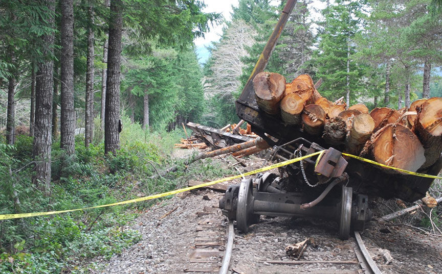- L'accident s'est produit quand une rame de 11 wagons chargés de grumes s'est séparée du mouvement et a dévalé la pente descendante de façon non contrôlée avant de heurter des véhicules d'entretien.