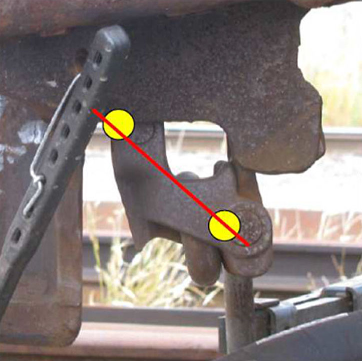 - Au cours d'une réparation antérieure de l'attelage, on avait installé un verrou à manœuvre par le haut dans le mécanisme à manœuvre par le bas. Bien qu'une telle configuration soit admissible, la synchronisation mécanique du verrou a été légèrement retardée au cours de l'attelage et, par conséquent, le verrou ne s'est pas complètement abaissé en place.