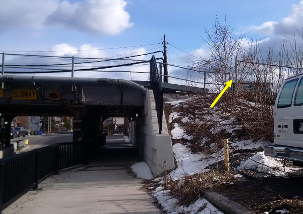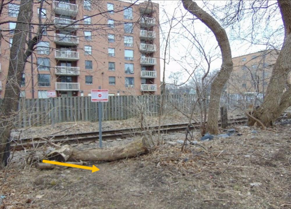 Une ancienne plateforme de voie parallèle et au sud de la voie 1 s'étendait de la rue Yonge à l'avenue Bartlett, sur une distance de quelque 2,5 milles. La plateforme était devenue un sentier utilisé régulièrement pour accéder à l'emprise ferroviaire sans autorisation.