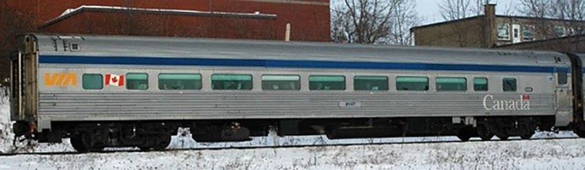 Au sein de sa flotte, VIA possède 43 voitures voyageurs de la classe Économie de type AES 1 (figure 1). Ces voitures ont été construites, pour la plupart, dans les années 1950 et acquises par VIA en 1978. Les voitures les plus vieilles (voitures 8130 à 8147), construites en 1946 et 1947, ont fait l’objet d’importants travaux de modernisation avant que VIA les remette en service au début des années 1990. L’intérieur de ces voitures est demeuré inchangé.