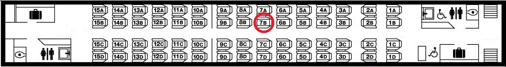Le siège 7B, comme tous les sièges de cette voiture, est muni d’un repose-jambes escamotable. Lorsqu’il est rangé en position normale (non déployé), le repose-jambes est replié sur lui-même entre le dessous du siège et le plancher de la voiture (figure 3).