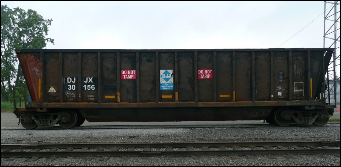 En 2012, le wagon avait été retiré du service de transport de charbon et acheté par le David J. Joseph Company Rail Equipment Group (DJJ Co.), dans le cadre d’un achat plus important de 1650 wagons semblables destinés au transport de ferrailles d’acier. DJJ Co. a modifié l’ensemble des 1650 wagons en remplaçant les 4 barres transversales de renfort, qui entravaient le chargement par le haut de la ferraille d’acier, par 2 grands profilés en U en acier mécanosoudés à l’intérieur du wagon pour compenser le changement structurel et renforcer la tôle inférieure. Les modifications apportées aux 1650 wagons ont été approuvées par l’AAR.