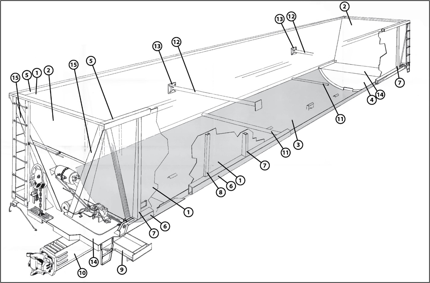 Toutefois, ni le Règlement sur la sécurité des wagons du Canada ni les normes de sécurité des wagons de marchandises des États-Unis ne contiennent de limites relatives aux dommages causés à des éléments de structure importants des wagons de marchandises, comme la déformation de montants latéraux; la rupture de tôles latérales, de tôles de bout et de sections de la tôle inférieure; la cambrure négative du brancard; la déformation des membrures supérieures; ou la présence de fissuration et de corrosion importantes. Par conséquent, les défectuosités structurales n’interdisaient pas l’échange du wagon DJJX 30478.