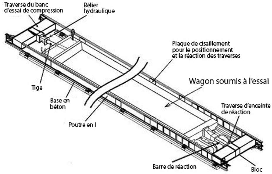 Essais de compression en queue de wagon des wagons-tombereaux baignoires DJJX effectués par le Conseil national de recherches Canada