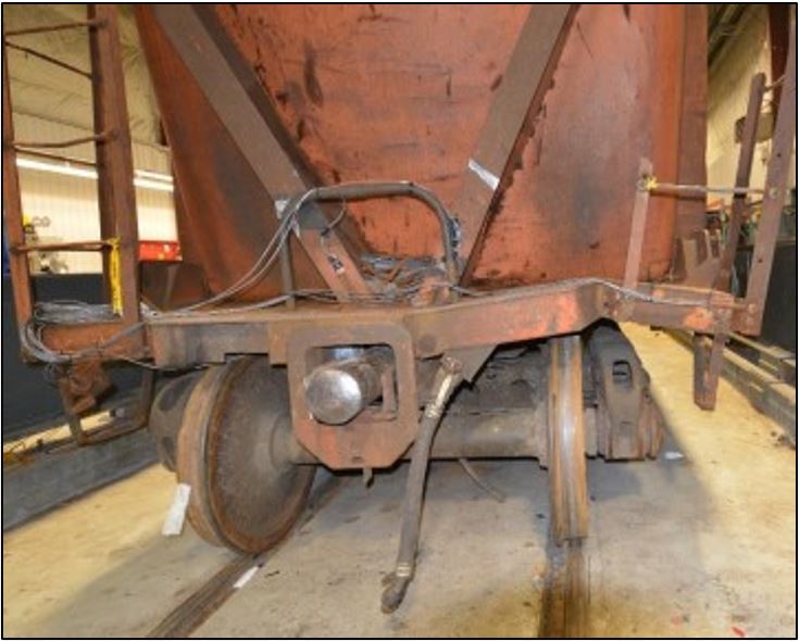 La présence de défectuosités structurales dans les plaques de cisaillement, les longrines tronquées, les traverses pivots et les brancards ainsi que l’amincissement des sections d’acier en raison de la corrosion du wagon DJJX 30478 ont eu une incidence négative sur la capacité du wagon à résister aux forces exercées le long du train. Le wagon-tombereau baignoire DJJX 1978, construit par Berwick Forge & Fabricating Corporation (Berwick Forge) en 1978, a été utilisé dans le cadre d’un type d’exploitation exigeant (c.-à-d. le transport de ferrailles d’acier) pour lequel il n’avait pas été conçu à l’origine. Il n’y avait aucune exigence réglementaire ou de l’industrie visant l’exécution périodique d’une inspection complète du wagon afin de s’assurer qu’il conservait son intégrité structurale. Par conséquent, son intégrité structurale s’est détériorée et cela n’a pas été décelé avant l’accident.