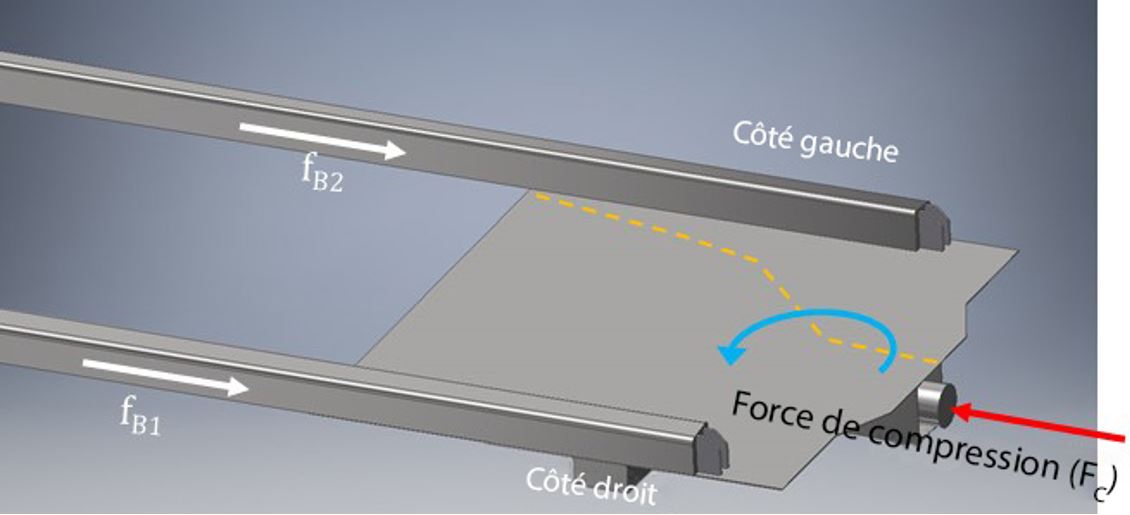 L’analyse du FEM de la structure de la plateforme du bout B du wagon DJJX 30478 a permis de calculer que le bout B se romprait sous une charge de compression d’environ 410 000 livres-force (410 kips). Par conséquent, le bout A du wagon à l’étude, qui a subi une défaillance dans le tunnel, s’est probablement rompu sous une charge de compression inférieure à 410 kips.