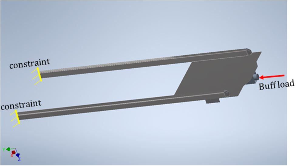 La construction d’un modèle de DAO complet pour l’ensemble du wagon-tombereau baignoire de Berwick Forge n’était pas possible en raison de l’absence de dessin détaillé, et n’était pas non plus nécessaire, étant donné que les charges de compression et de traction sont principalement supportées par la structure de la plateforme du wagon, qui se compose d’une longrine tronquée, de traverses pivots, de plaques de cisaillement et de brancards. Essentiellement, les charges de compression et de traction sont transmises, par conception, de la longrine tronquée et de la traverse pivot à la plaque de cisaillement, puis de la plaque de cisaillement aux brancards. Les brancards transfèrent les charges de compression et de traction d’une extrémité à l’autre. Par conséquent, seul le modèle de DAO de la structure de la plateforme du wagon a été utilisé pour l’analyse des contraintes sous différentes charges de compression.