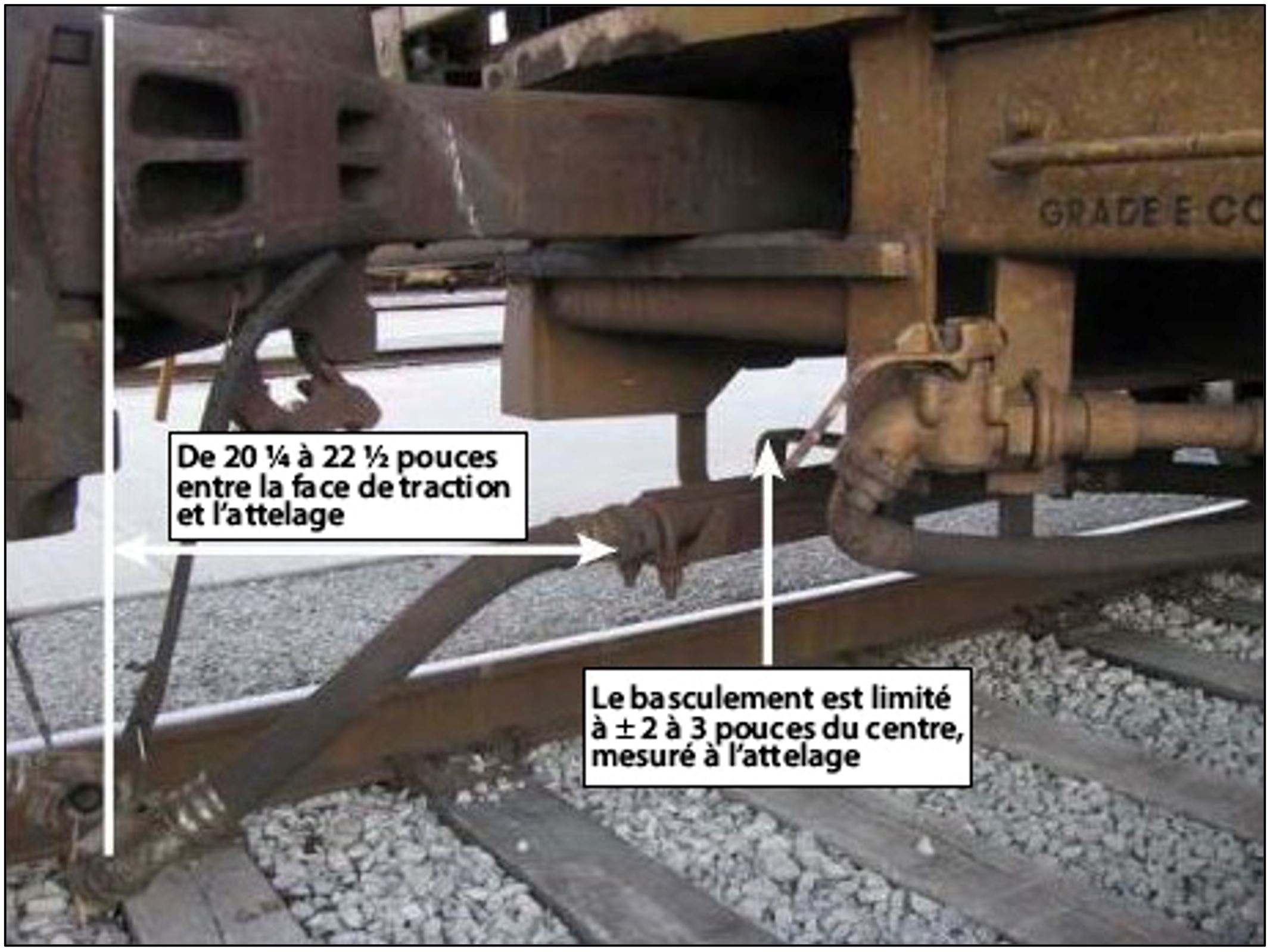 L’appareil de choc et de traction peut utiliser soit des appareils de traction à friction standard, soit des appareils amortisseurs en bout de wagon, selon la conception et l’utilisation prévue du wagon.
