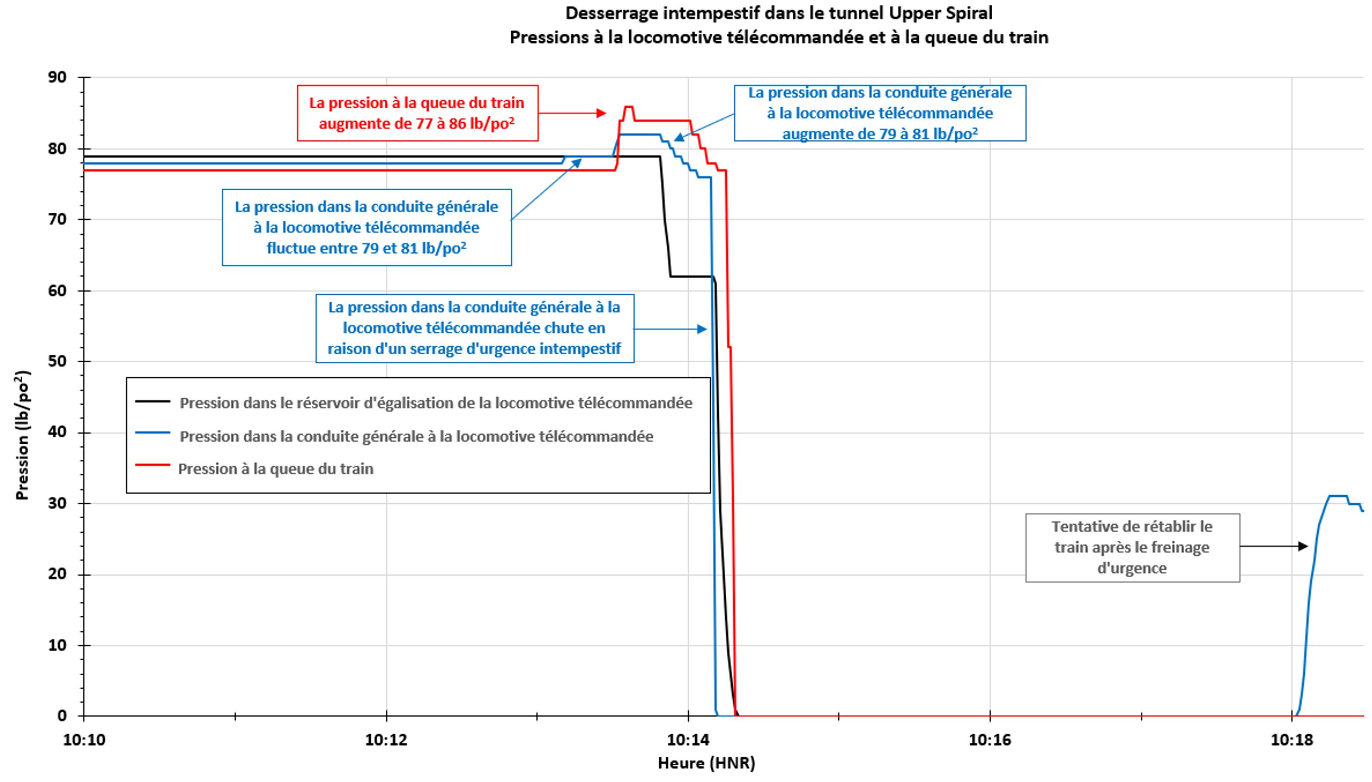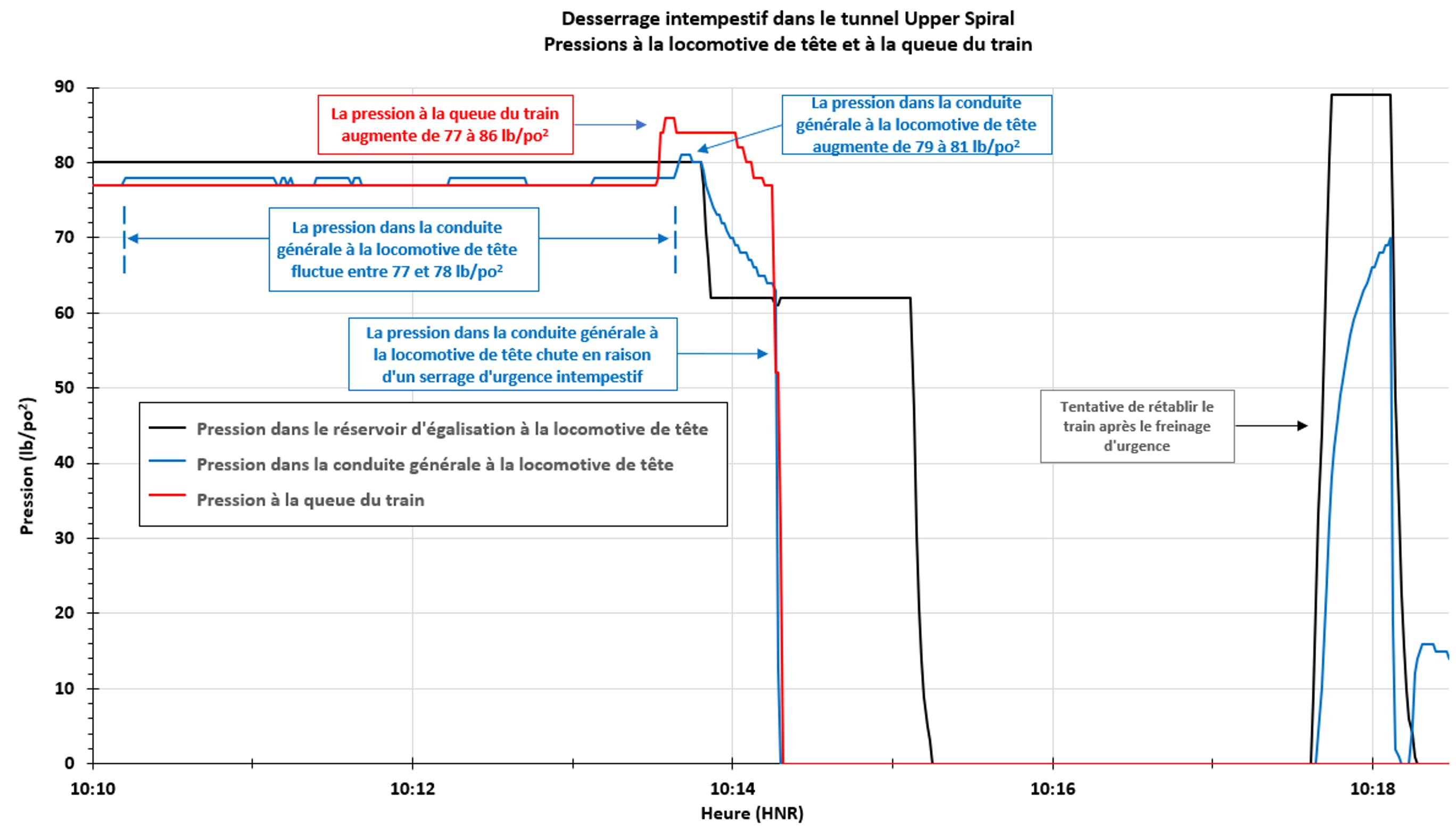 Au cours de l’événement, les augmentations de la pression dans la conduite générale de chaque locomotive se sont succédé comme suit :