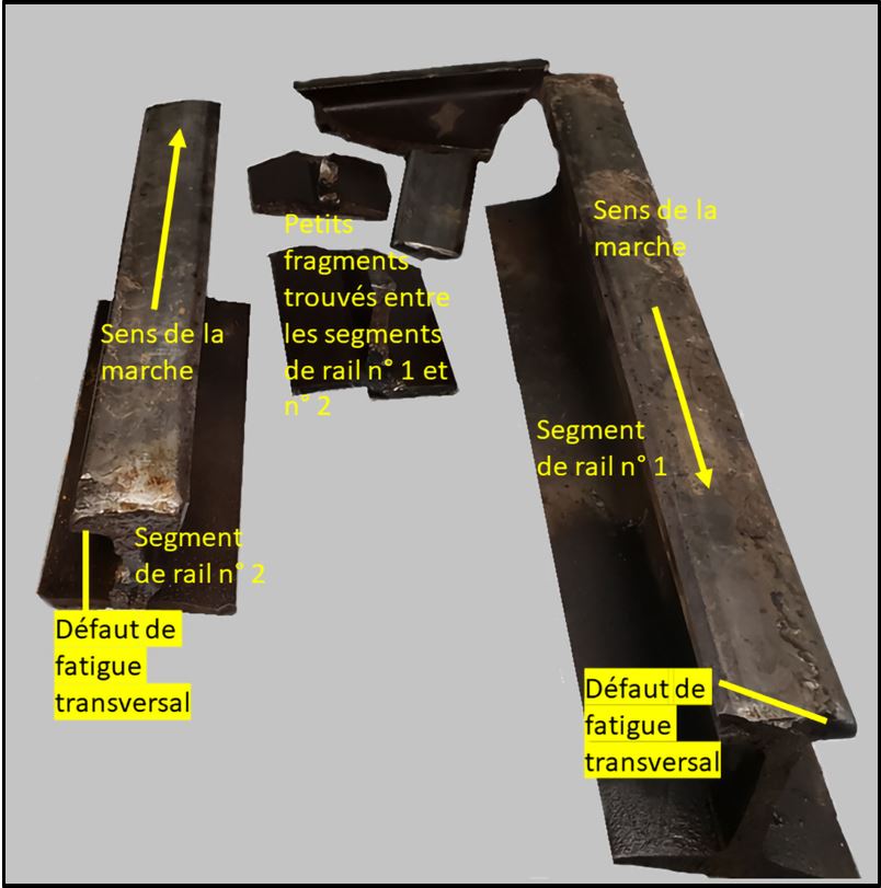 L’examen des segments de rail récupérés du rail nord rompu a permis de déterminer ce qui suit :