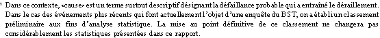 4 Le classement préliminaire des événements récents pourrait être révisé après l'achèvement des enquêtes du BST. Il est toutefois peu probable que cette révision influe considérablement sur les tendances représentées ici.a) une perte de vie;