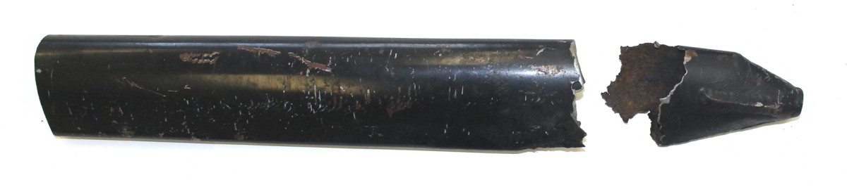 - Dans la zone très corrodée de la partie inférieure du mât de voilure rompu, l'épaisseur de la paroi n'était plus que de 0,002 à 0,019 pouce, soit largement inférieure au minimum requis. Des essais de perforation effectués dans cette zone ont produit un enfoncement apparent.