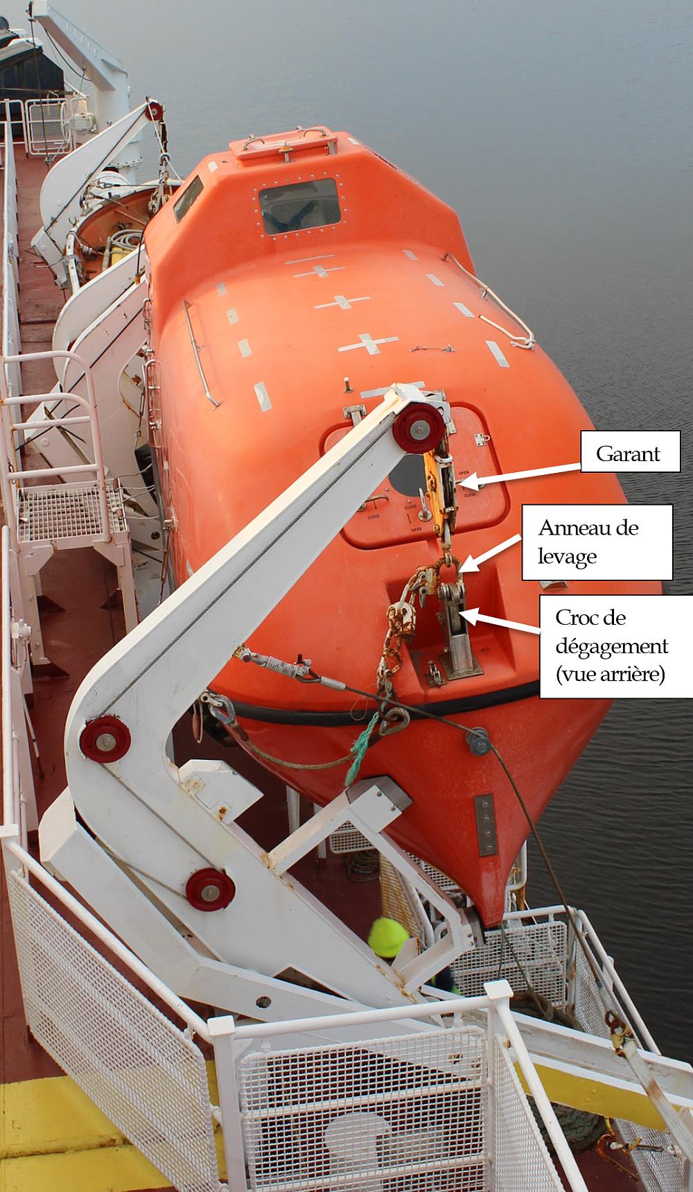 Défaillance d’un croc de dégagement d’embarcation de sauvetage