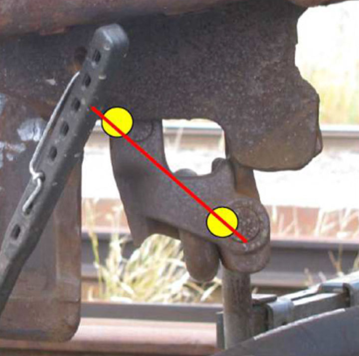 Étant donné les risques associés aux mouvements non contrôlés de matériel roulant causé par l'ouverture intempestive d'une mâchoire d'attelage, il faut recourir à des moyens de défense supplémentaires, comme une vérification visuelle, pour s'assurer que les articulations du lève-verrou d'attelage à manœuvre par le bas sont alignées à l'horizontale.