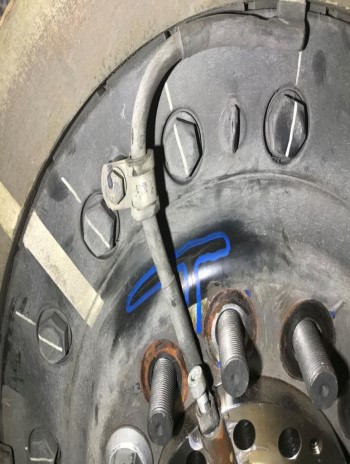 - On a signalé que le moyeu de roue L1 avait une fissure visible dans la zone de la vis de démontage A.