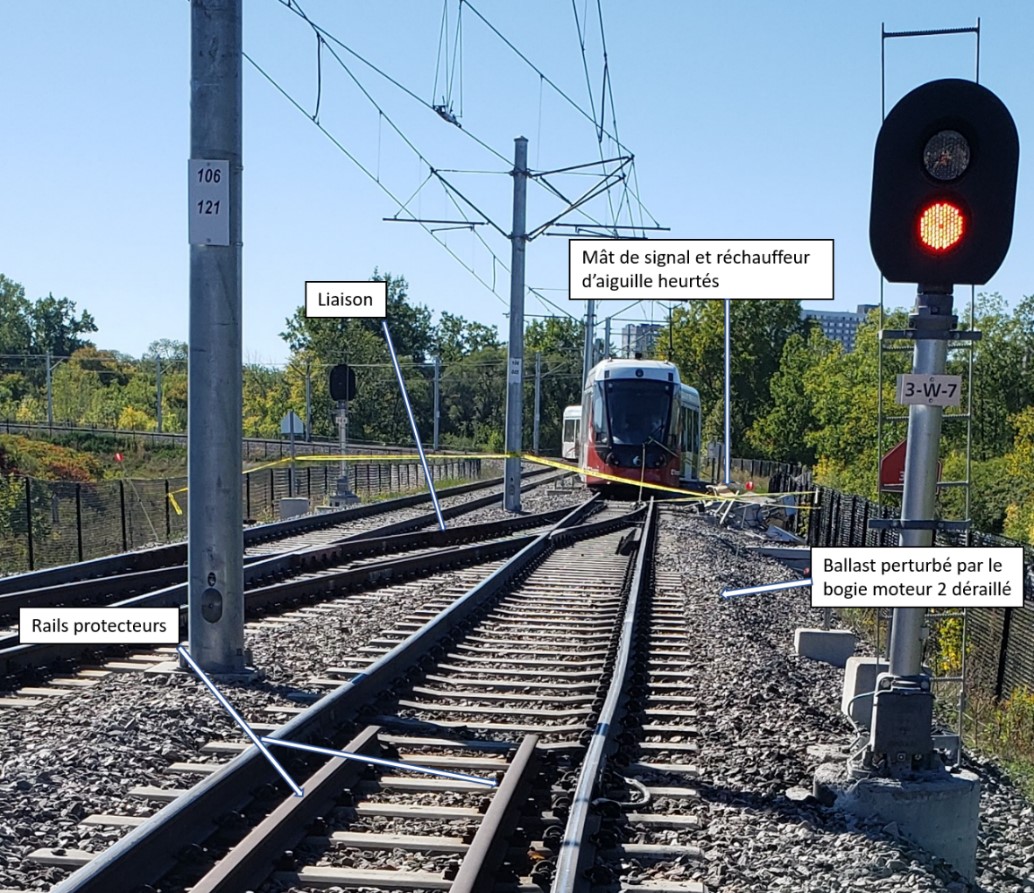 Déraillement en voie principale d’un train du Train léger sur rail d’Ottawa le 8 août 2021