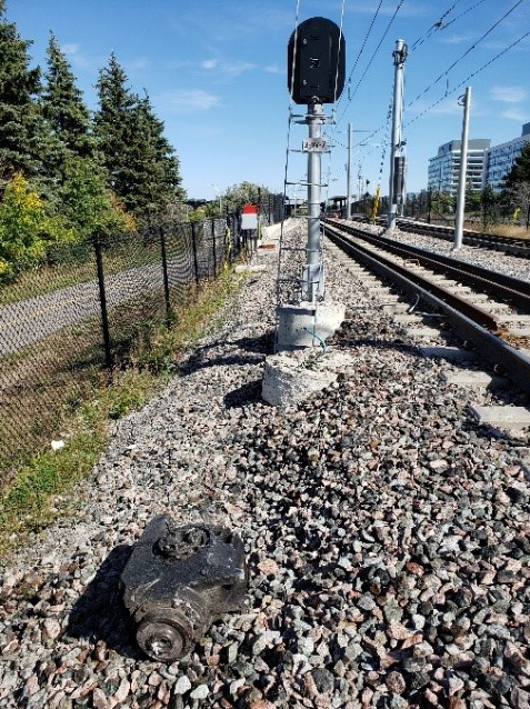 Le 8 août 2021 vers 20 h 34Note de bas de page 2, un train de banlieue du TLRO qui circulait en direction est passait de la voie nord à la voie sud par l’aiguillage de liaison sud SW-302 à une vitesse d’environ 30 km/h lorsqu’il a déraillé à environ 90 mètres à l’est de la station Tunney’s Pasture à Ottawa. Il a été déterminé que la roue no 3 s’est détachée de l’essieu en raison de la défaillance catastrophique d’un roulement à rouleaux, qui n’avait pas été détectée auparavant, ainsi que de la rupture par surchauffe subséquente de la fusée d’essieu. Il n’y avait aucun passager à bord au moment de l’événement (événement R21H0099 du BST)Note de bas de page 3.
