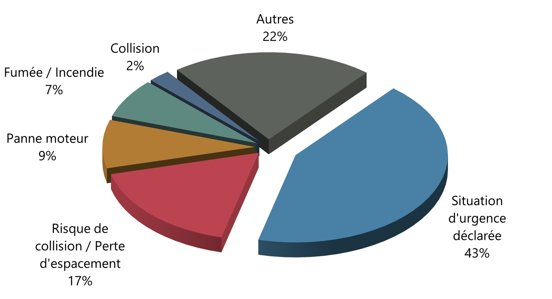 Tout au long du présent document, il y a des cas où la somme des catégories d’événement est plus élevée que le nombre total d’événements. Par exemple, si un événement unique met en cause un avion et un planeur, le nombre d’événements augmentera de 1 dans chaque catégorie d’aéronef, mais l’événement lui-même ne comptera qu’une fois dans le nombre total d’événements.