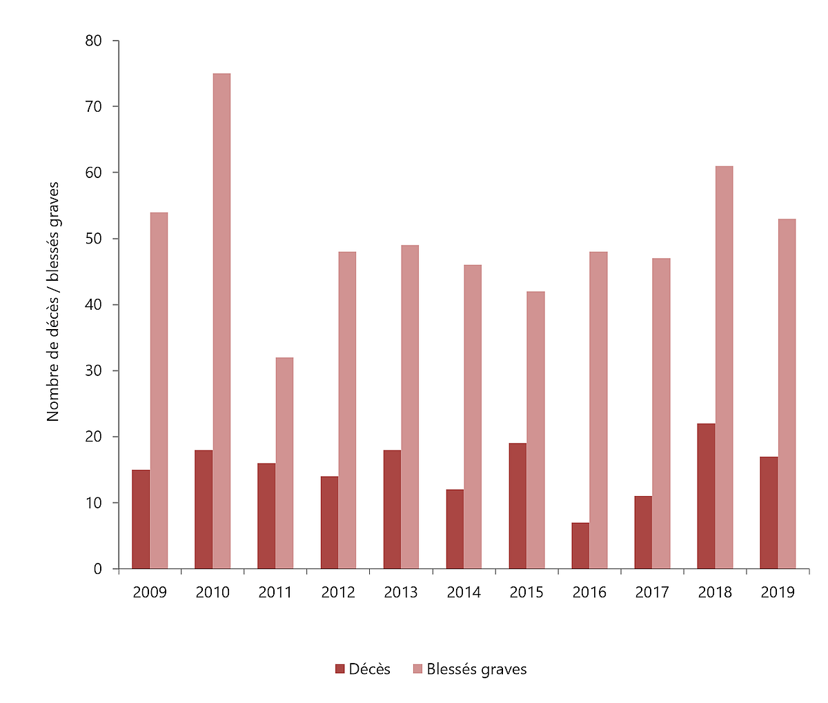 | Blessés graves liés à des accidents à bord d'un navire | 49 | 70 | 30 | 42 | 49 | 45 | 30 | 43 | 40 | 53 | 43 |