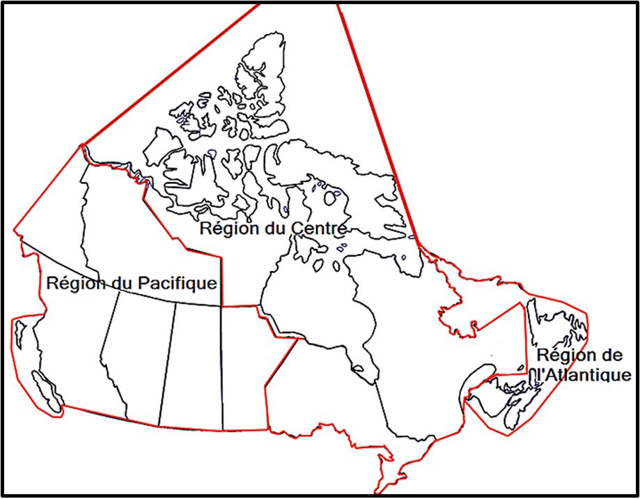 La région du Pacifique comprend la Colombie-Britannique, l’Alberta, la Saskatchewan, le Manitoba et les Territoires du Nord-Ouest et le Yukon au sud du 70e parallèle, ainsi que les eaux adjacentes à ces provinces et territoires.