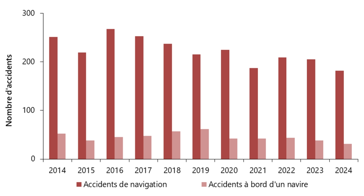 | Année | Accidents de navigation | Accidents à bord d'un navire |