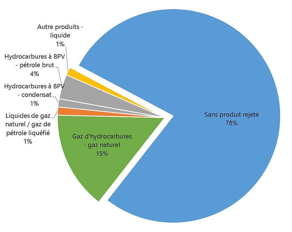 - le rejet non intentionnel ou non maîtrisé d’un produit autre que du gaz d’hydrocarbures, des hydrocarbures à HPV ou des hydrocarbures à BPV;